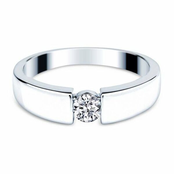 - Hervorhebung des Diamanten: Die neutrale Farbe des Weißgoldes lässt den Diamanten noch strahlender und funkelnder wirken. Der Kontrast zwischen dem weißen Metall und dem glitzernden Stein verstärkt die Wirkung des Brillanten.