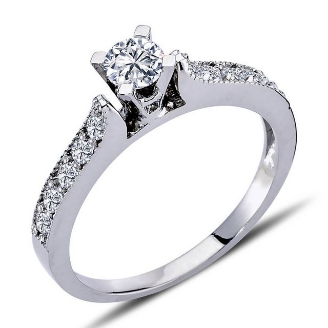 - Betont die Brillanz des Diamanten: Die kühle Farbe des Weißgolds lässt den Diamanten noch heller erstrahlen.