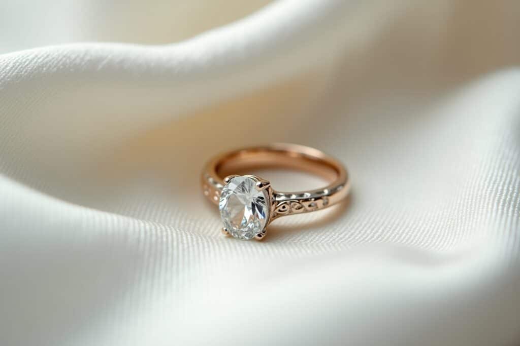 - Edelsteine und Fassungen: Die Wahl des Edelsteins spielt ebenfalls eine Rolle. Diamanten passen zu beiden Metallen, doch die Fassung kann den gewünschten Effekt erzielen. Eine Silberfassung für den Verlobungsring kann den Brillanten hervorheben und ihm eine moderne Note verleihen, während eine Goldfassung den Stein wärmer und klassischer erscheinen lässt.