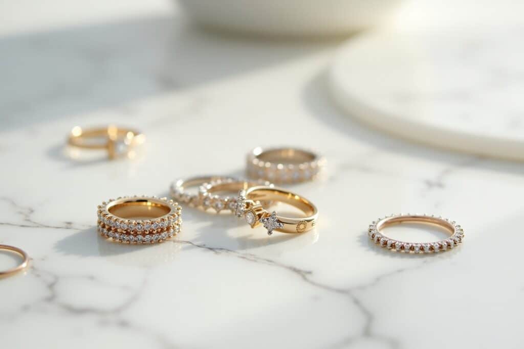 - Keine hochstehenden Elemente: Vermeide Ringe mit sehr großen, hoch herausragenden Steinen, die leicht hängen bleiben oder beschädigt werden könnten.